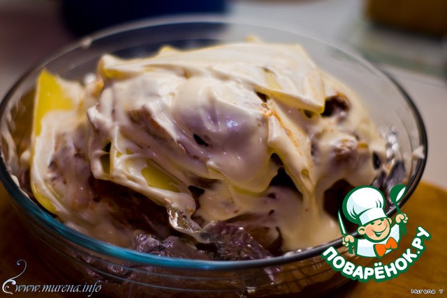 И это смазываем майонезом. Я смазывала майонезом собственного приготовления.