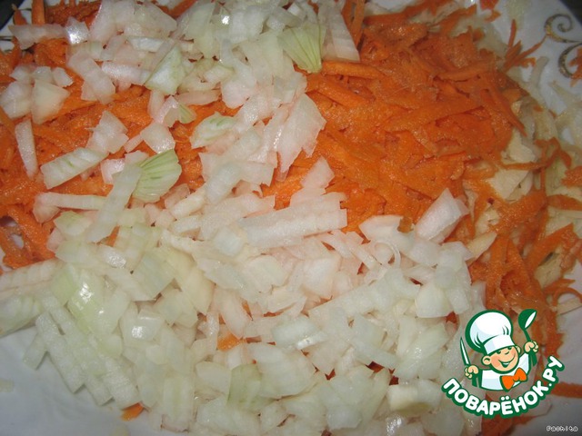 Картофель, морковь почистить, натереть. Лук репчатый очистить, нарезать.