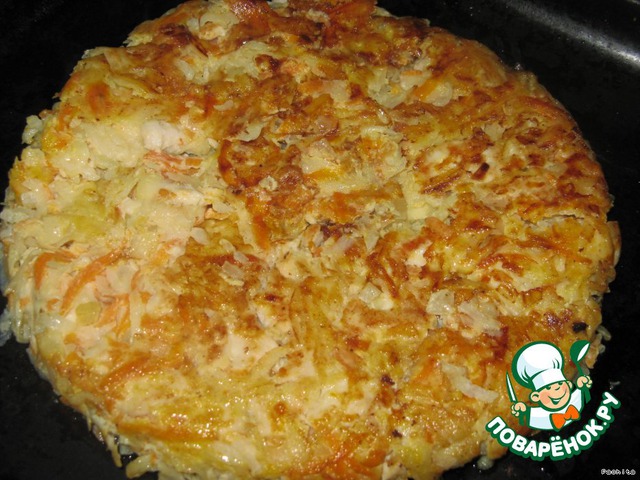 Соединить картофель, морковь, лук, мясо. Добавить яйца, соль, перец. Хорошо перемешать, выложить на смазанную раст.маслом сковороду, поджарить.
