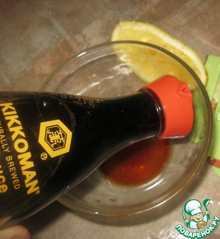 К выдавленному соку 1 лимона, добавить соевый соус ТМ "Kikkoman"