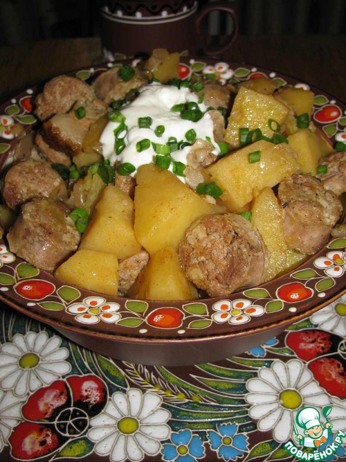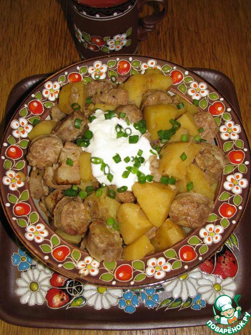 Картофельный гуляш с колбасками