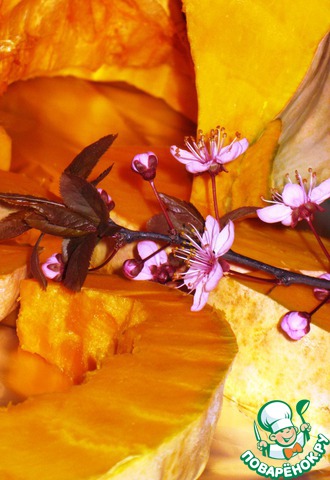Тыкву необходимо вымыть и порезать дольками, уложить на противень и запечь в духовке при 180°C приблизительно в течении 30-40 минут. Сырая тыква весила чуть больше 400 грамм, после приготовления и очистки - 250 и в ингредиентах указан вес запеченной тыквы.