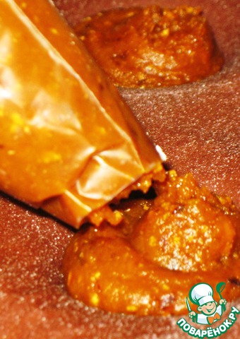 После охлаждения можно очистить тыкву и пюрировать. Затем заправим нашу начинку ложкой бальзамического уксуса, посолим и добавим растертое в крошку печенье амаретти, черный перец и мускатный орех. Поместите начинку в кондитерский мешок.