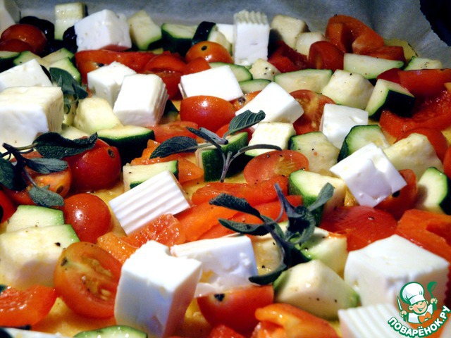 Запекать в духовке при200 °C, примерно 30 мин. И лучше, если противень вы поставите не так высоко, как это сделала я. Овощи немного поджарились, а низ был еще без корочки. Пришлось потом переставить вниз, а верх закрывать фольгой.