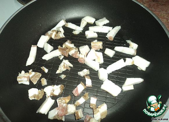 Обжариваем сало (если кому не нравится жареное сало, то можно вытопить жир, а шкварки убрать)... И никакого масла!!!