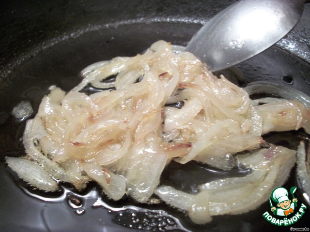Поджарим его на медленном огне в растительном масле до золотистого оттенка.