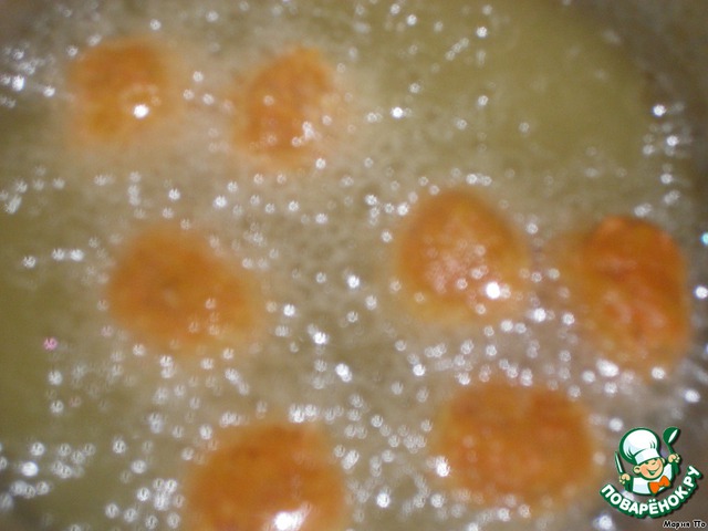 Обжарить шарики во фритюре до коричневой корочки.