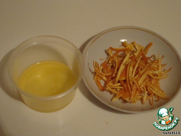С апельсина снять цедру и нарезать соломкой, выжать сок.