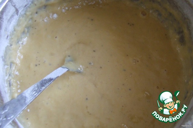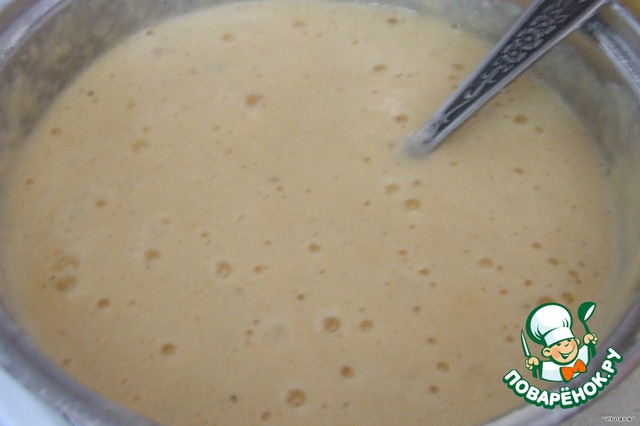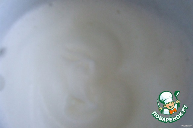 Белки нужно соединить с жидким тестом и аккуратно все перемешать.