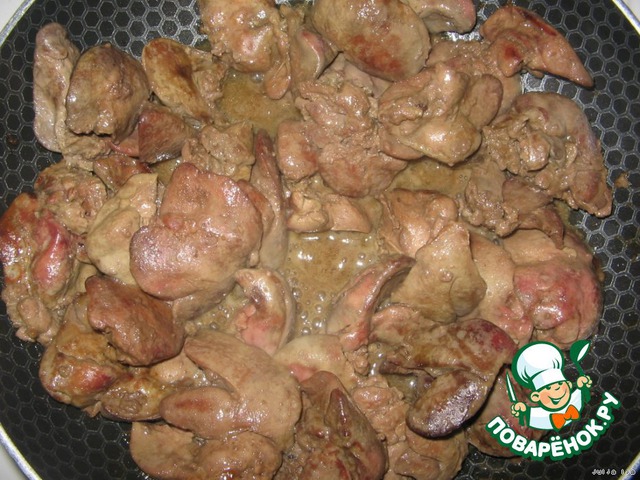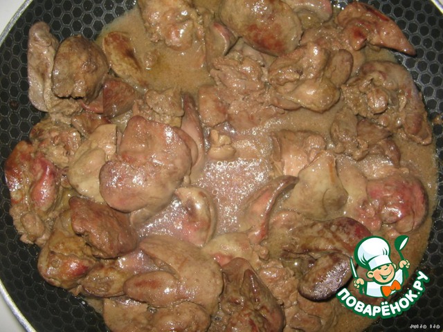 Добавить в сковородку жидкость, в которой мариновалась печень.