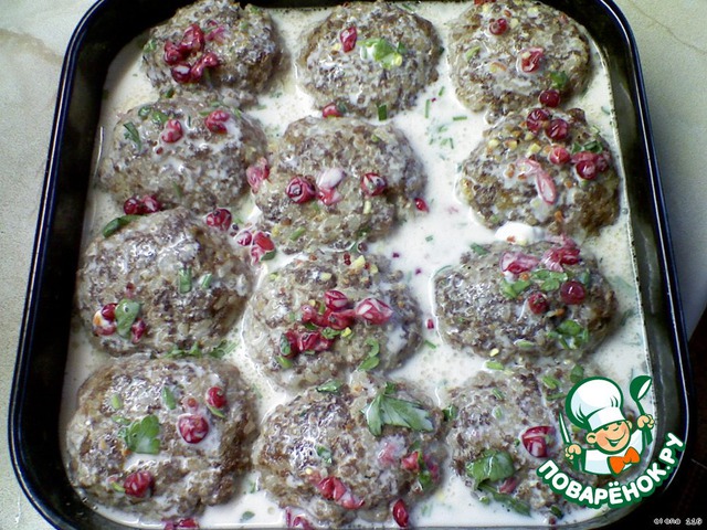 | Нежные и вкусные "eжики" из мяса в медово-сметанной заливке с красной смородиной. |