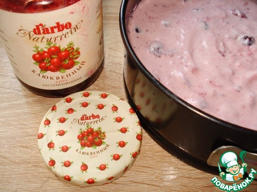 Делаем заливку смешиваем сметану с 2 столовыми ложками клюквенного соуса от D'arbo.