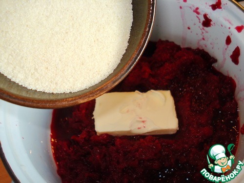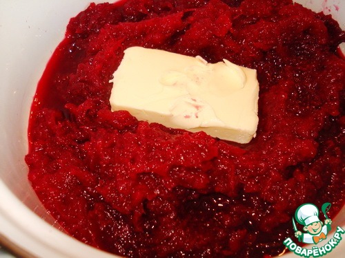 Свеклу очистить и натереть на мелкой терке, добавить сливочное масло, положить в кастрюлю.