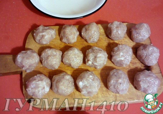 5. Из фарша делаем тефтели с величину большого грецкого ореха.
