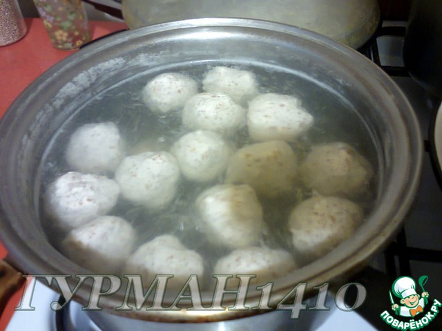 6. Заранее на плиту поставить кастрюлю с водой. Пока лепили тефтели, вода закипела