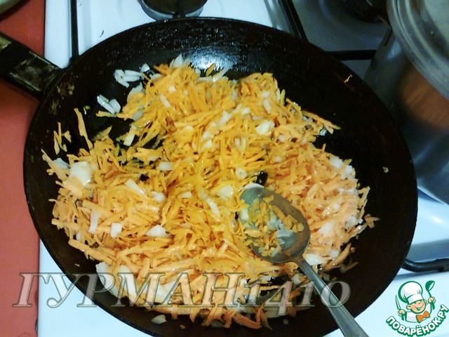 14. Добавляем на сковороду к луку и морковке, пассеруем.