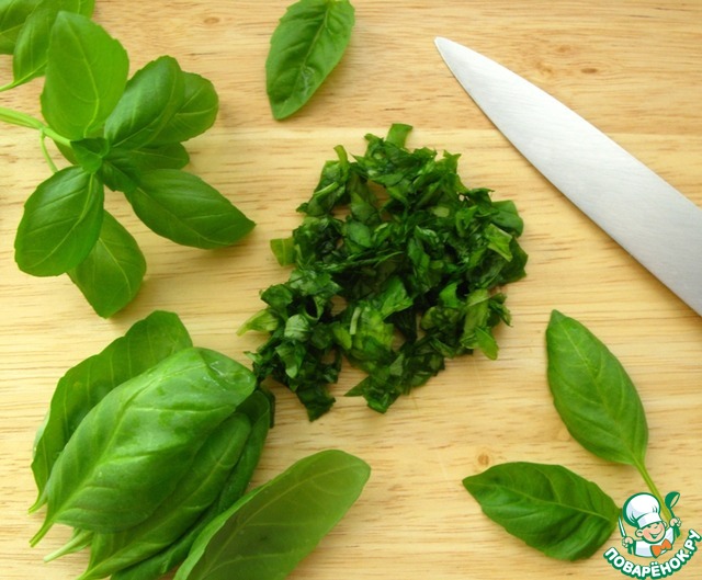 3. Базилик измельчить, отложить 1 ст. л. для соуса.