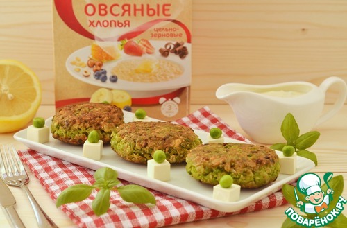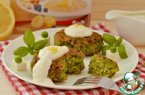 Овсянники из зеленого горошка с базиликом и фетой под йогуртовым соусом