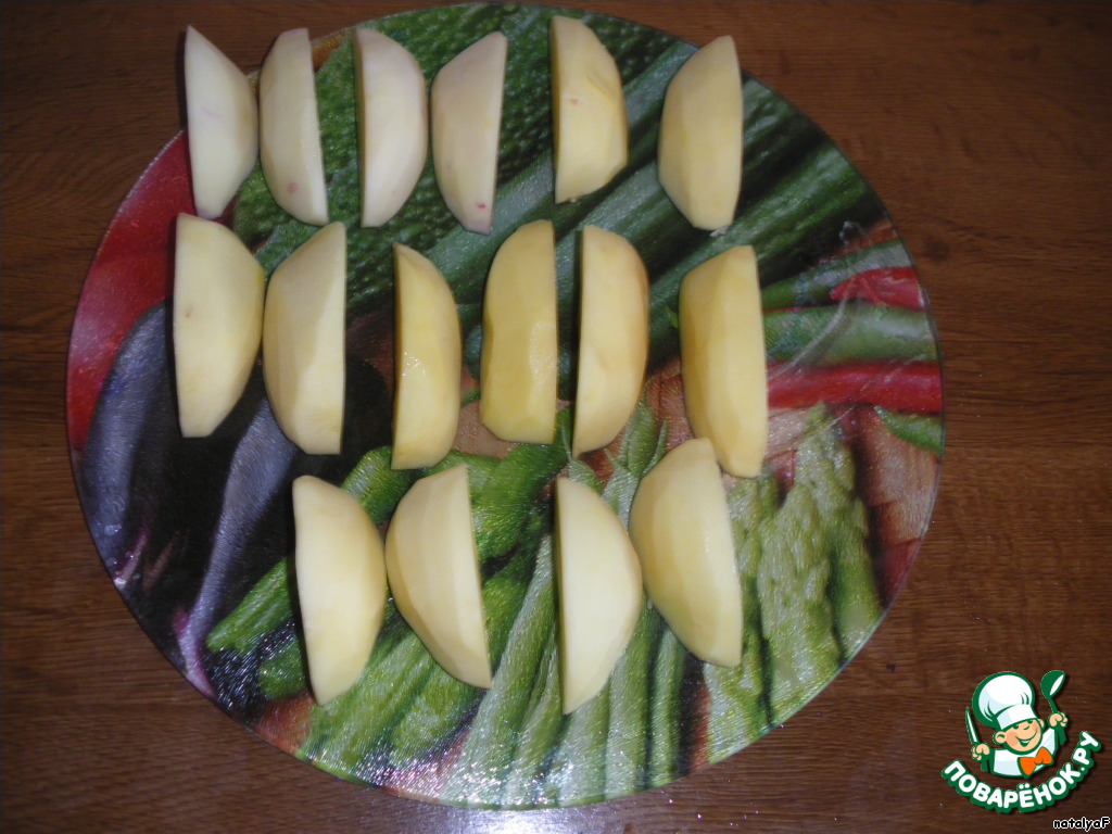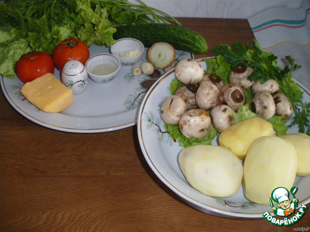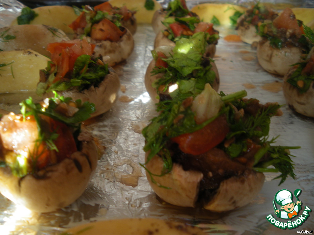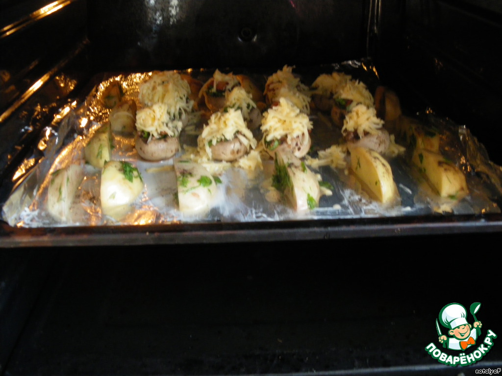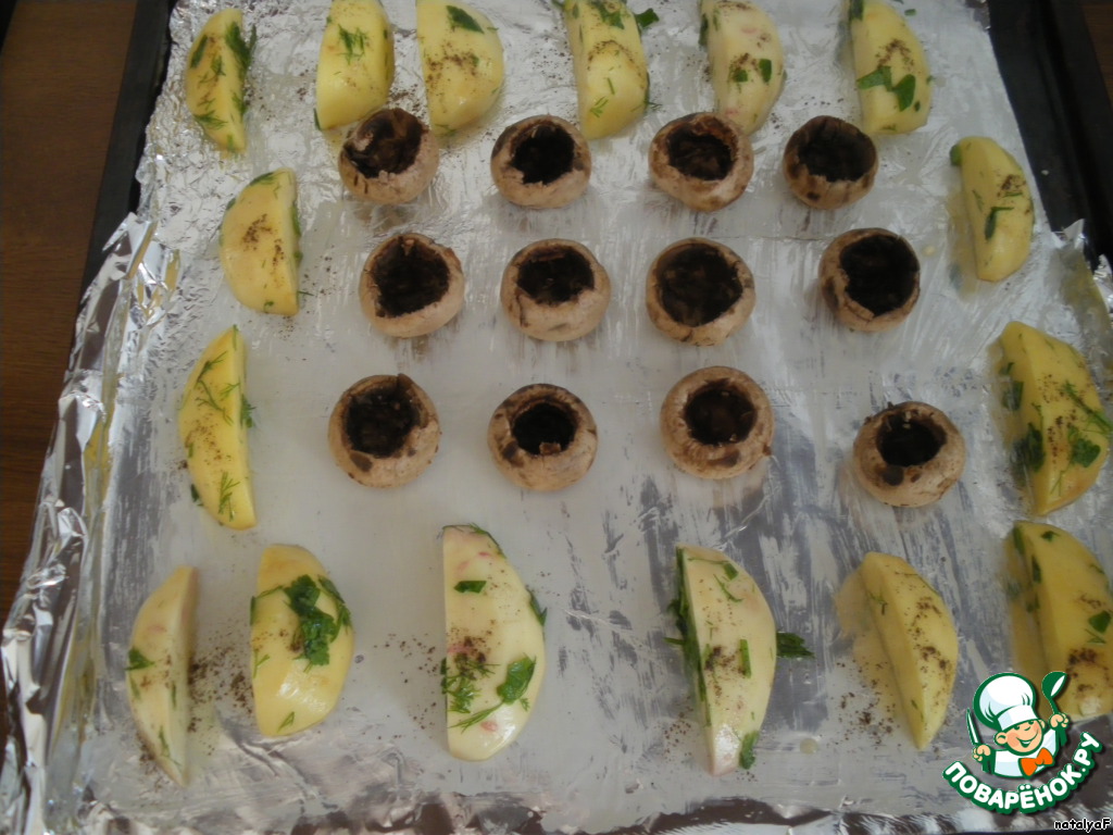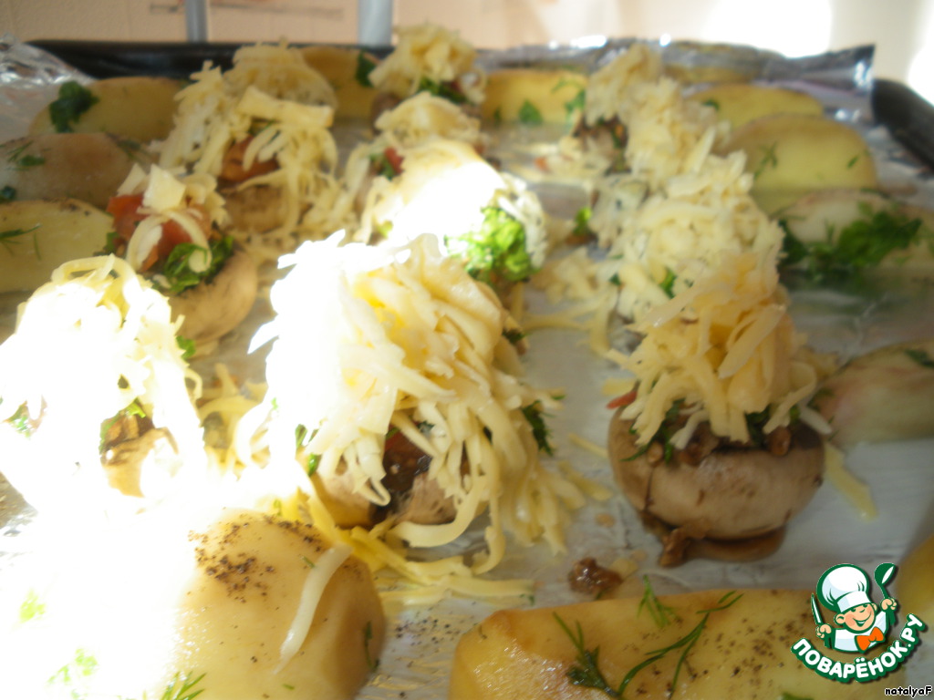 Фаршированные шляпки шампиньонов с соевым сыром и с запеченной картошкой