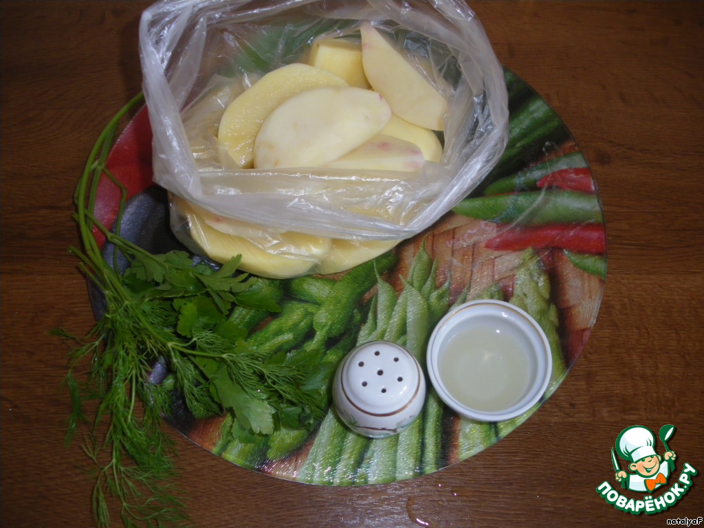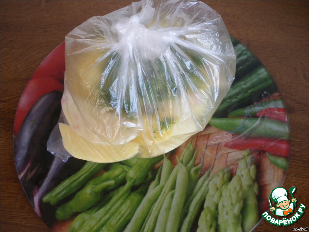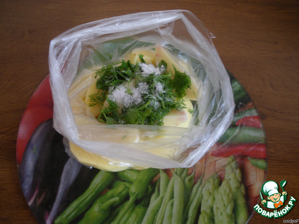 Пакет надуть и завязать горловину, тщательно потрясти, чтобы соль и зелень распределилась равномерно.