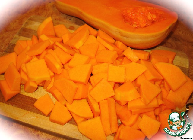 Для начала очищаем тыковку от кожуры и семечек и нарезаем небольшими пластинками.