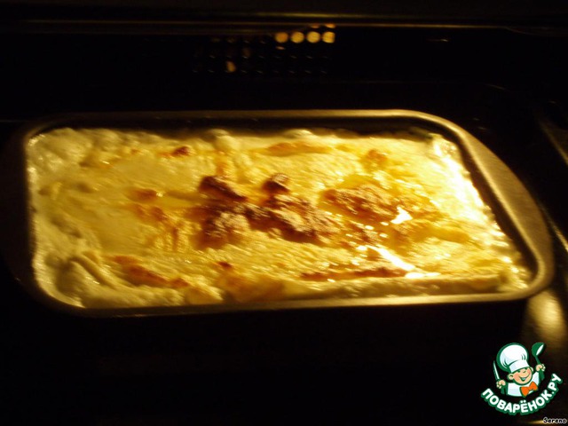 Выливаем бешамель на каннеллони, посыпаем пармезаном и ставим в духовую печь на 30 минут при 180 градусов.