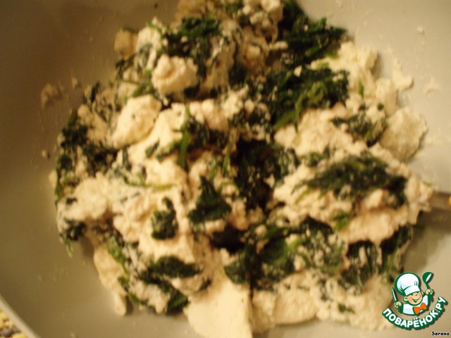 ...перемешанного творога, яйца и шпината.