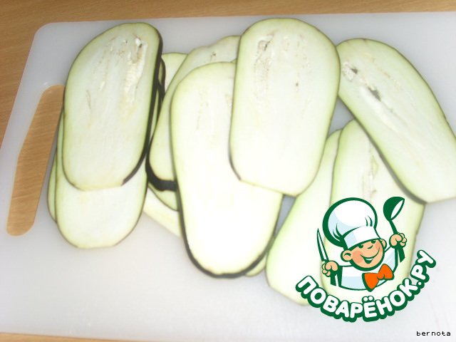 Баклажаны нарезаем пластинками средней толщины.