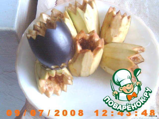 Вырезаем баклажаны в виде "тюльпанов", соль кладем во внутрь, оставляем на несколько минут.