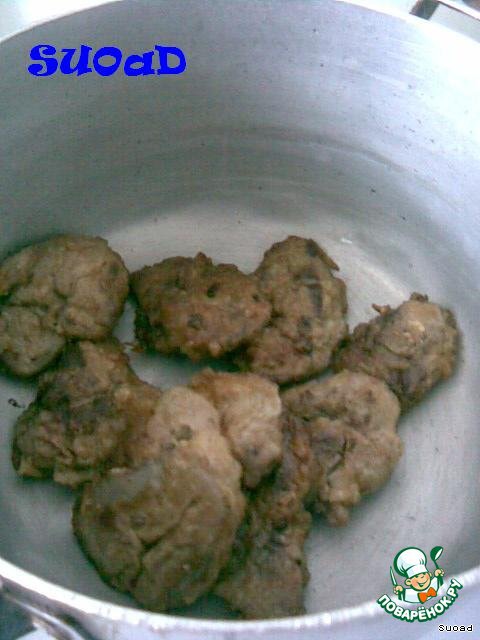 Сложить печень в кастрюльку, в которой будем притушивать.