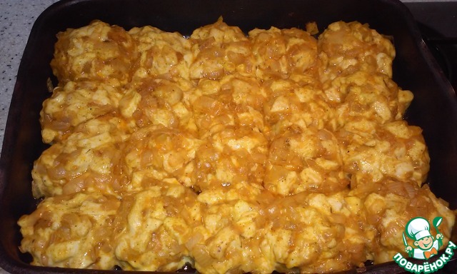 Достаем наши тефтели. Поливаем равномерно соусом. Снова отправляем в духовку еще на 15 минут.