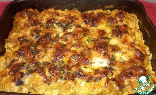 Солим, перчим, выдавливаем чеснок. И добавляем 1/2 ч. л. карри. Опять же, если дети, лучше карри не класть, это сильная приправа. Затем вмешиваем обжаренный лук.