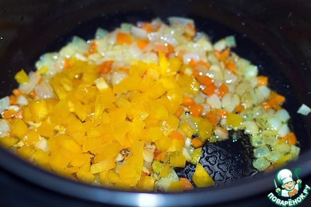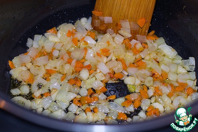 Обжарить на растительном масле или утином жире, оставшимся после приготовления утки, нарезанные: репчатый лук, морковь, чеснок.