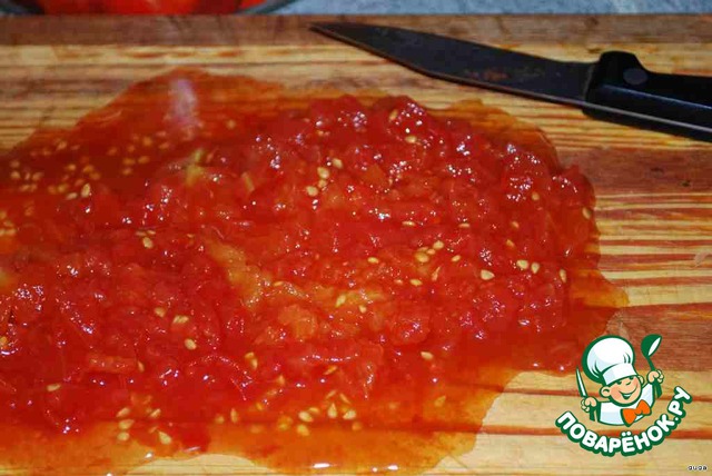 Режем помидоры на мелкие кусочки и протираем их через сито.