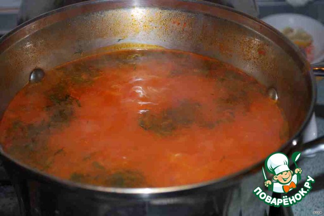 Свежие или мороженные помидоры сначала режем пополам, чуть тушим и тоже протираем через сито. Добавляем все в нашу "зупку". Туда же доливаем 2 половника томатного сока или 1-2 ст. ложки томатной пасты. Солим, перчим и доводим до кипения.