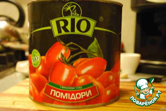 Конечно, сейчас не совсем помидорный сезон. Можно использовать замороженные помидоры или меня спасают вот такие помидоры в собственном соку. Они полностью натуральные даже без добавления соли. И что самое классное - уже без шкурки.