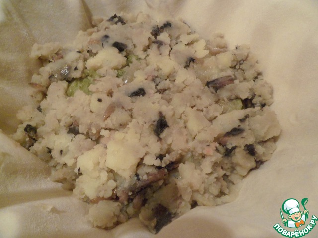 На тесто выложить слоями: картофельное пюре.