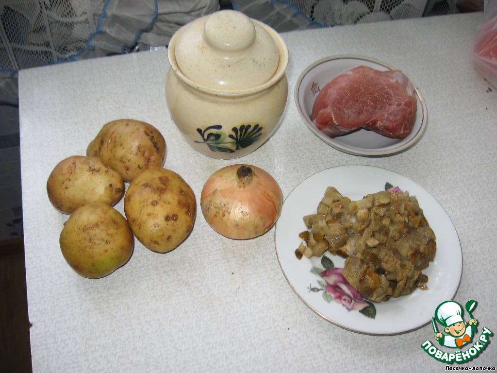 5. Укладываем в горшочек слоями: мясо, лук репчатый, грибы (я использовала белые, замороженные), картофель. Доливаем в горшочек кипяченой воды, чтобы мясо скрыло (тогда блюдо будет сочнее). Сверху смазываем майонезом. Ставим в разогретую до 200 градусов духовку на 40 минут. Прошу всех к столу. Приятного аппетита. Все просто и очень вкусно.