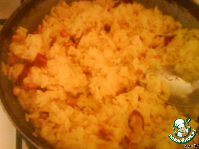 теперь можно высыпать в сковороду наш рис.