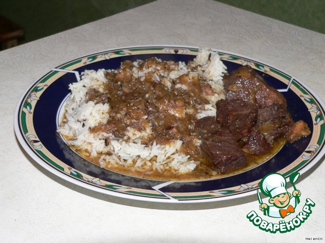 Больше всего моему семейству такое мясо нравится с гарниром из смеси риса басмати и дикого. И чтобы подливки побольше!Очень вкусно!Приятного аппетита!:-)