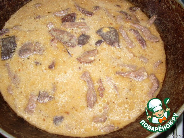 | Мяско очень нежное и вкусное, со сливками и грибами. |