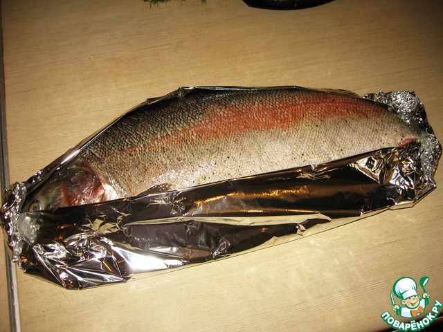 Подавая, разверните фольгу уже на столе. Угощайтесь с вареной молодой картошкой, свежими или запеченными овощами, с зеленым салатом и зеленью!