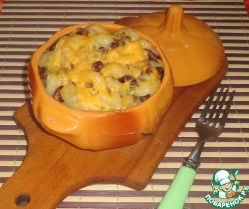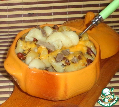 | Паста, запеченная в горшочке, с куриными сердечками и красной фасолью. Сытное и полезное блюдо. |