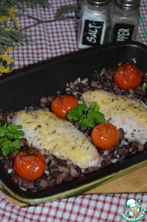 | Раньше курицу запекала только с картошкой, а вот с фасолью никогда не пробовала. Результат превзошел все ожидания. Фасоль очень вкусная, курочка нежная, а запеченные помидоры просто сказка. |