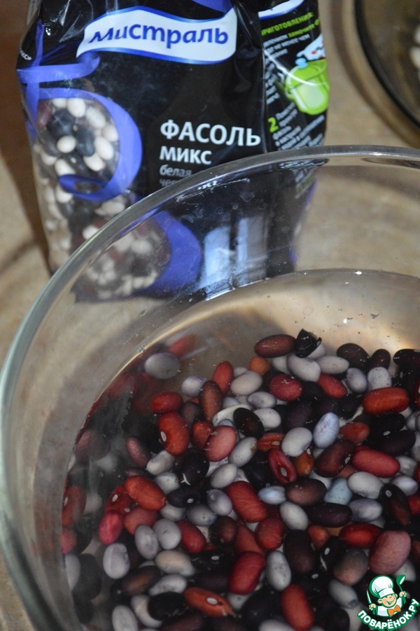 Фасоль замочить не менее чем на 4 часа, а лучше на всю ночь.