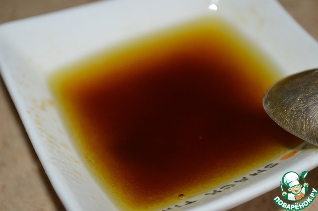 2 ст. л. оливкового масла смешать с бальзамическим уксусом, добавить сахар и щепотку соли.