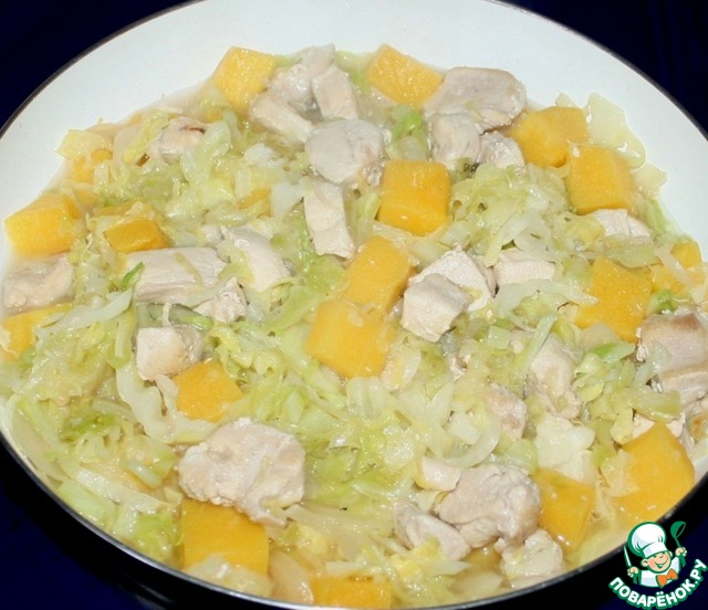 | Всем известно такое блюдо, как тушеная капуста. Предлагаю приготовить это знаменитое блюдо с некоторыми дополнениями. К капусте мы добавим яблоко, которое внесет в блюдо легкую кислинку и сочность, тыкву для сладости и курицу, которая сделает блюдо сытнее. Очень вкусно! |