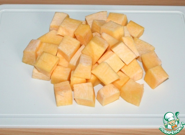 Тыкву очистить от кожуры и семян и нарезать на небольшие кусочки.