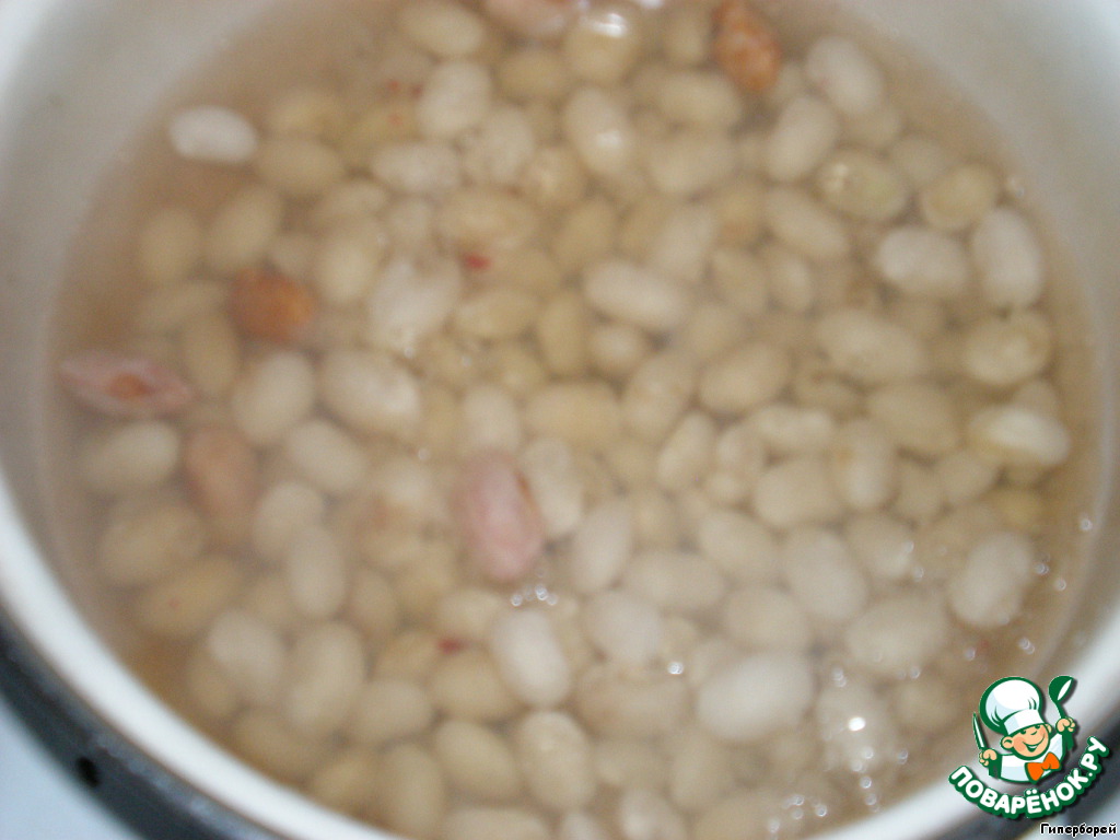 Предварительно замоченную фасоль (воду слить) залить свежей водой и варить до полуготовности.