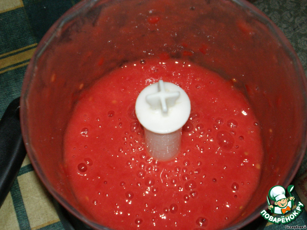 Помидоры залить кипятком, снять кожицу и измельчить.